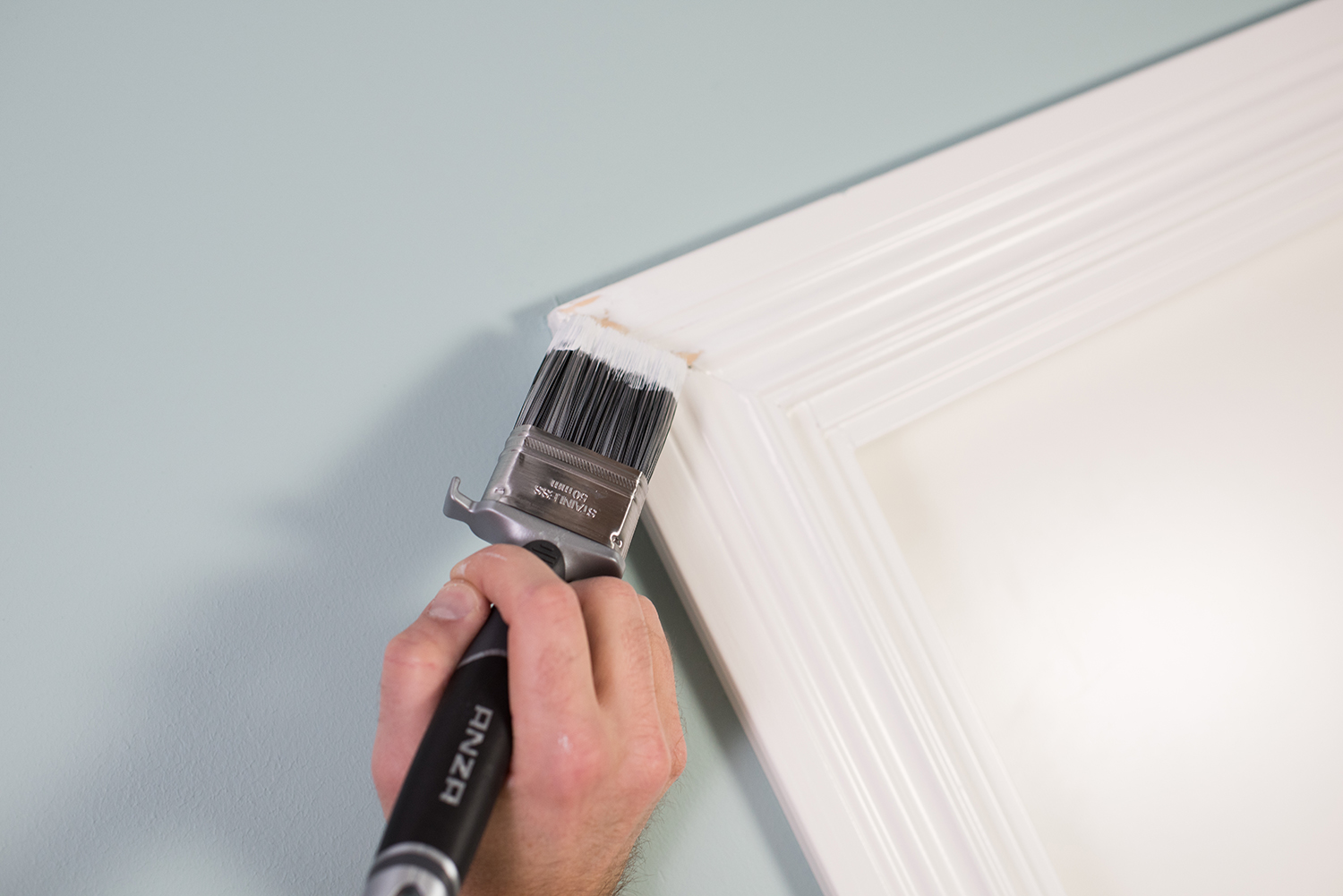 Nyt on aika aloittaa listojen maalaus oikeasti! Tee ensimmäinen pintamaalikerros käyttämällä sivellintä, jotta saat parhaan tuloksen. Kun maali on kuivunut, voit tiivistää mahdolliset raot tiivisteellä. Hio sitten lista mahdollisten kuitujen poistamiseksi ja pyyhi pölyt pois. Levitä sitten toinen kerros maalia ja olet valmis.