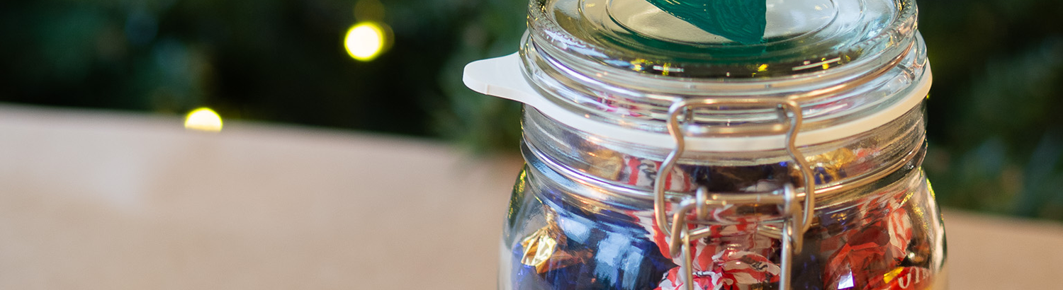 Lasipurkki on nyt maalattu! Täytä makeisilla ja anna joululahjaksi. Haluatko lisää inspiraatiota jouluisiin askarteluihin? Löydät kaikki pienempiä projekteja koskevat oppaamme täältä.