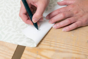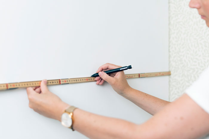 Använd inte en bläckpenna när du gör markeringar på väggen. Den blöder igenom tapeten.