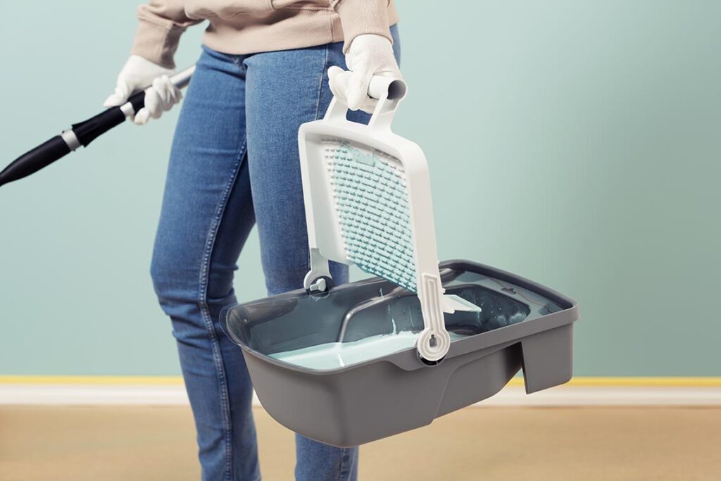 Ska du måla stora ytor och vill slippa att ofta fylla på färg i tråget? Vårt Fill & Carry färgtråg är en hybrid mellan tråg och hink och tar rejält med färg, har en lång avrullningsyta och står stabilt på underlaget så att du slipper spill och kladd. Med ett större tråg får du plats för mer färg så att du slipper fylla på lika ofta, samtidigt som du ser till att få ordentligt med färg i din roller vilket minimerar risken för ett flammigt resultat. Använd gärna tillsammans med en tråginsats.